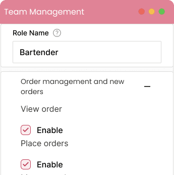 Design unique roles tailored to your restaurant's needs, specifying access levels and responsibilities for each.