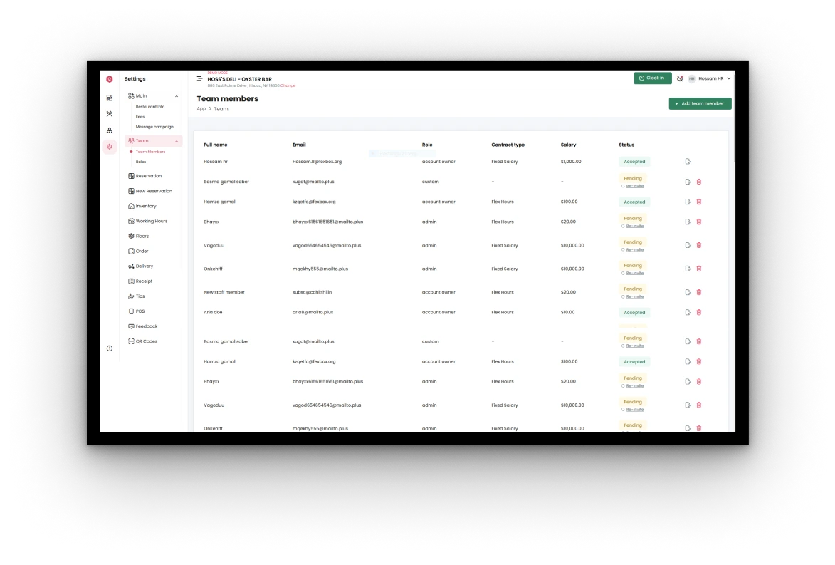 Qwizeen’s Team Management feature offers comprehensive tools to help restaurants build and maintain an efficient team. Whether you’re adding new members or assigning roles, this feature simplifies the process, ensuring clarity and accountability for every staff member.